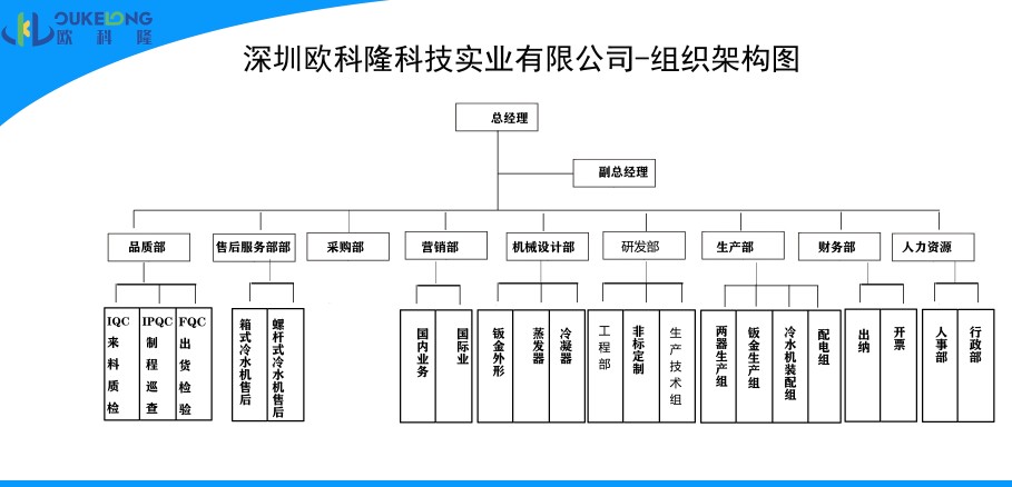 歐科隆制冷多年發(fā)展公司規(guī)模,提升制冷冷水機(jī)組研發(fā)科技能力的同時(shí),也摸索出了一條具有特色的適合歐科隆自身發(fā)展的創(chuàng)新管理經(jīng)驗(yàn)。組織架構(gòu)的本質(zhì)是為了實(shí)現(xiàn)企業(yè)戰(zhàn)略目標(biāo)而進(jìn)行的分工與協(xié)作的安排,組織架構(gòu)的設(shè)計(jì)要受到內(nèi)外部環(huán)境、發(fā)展戰(zhàn)略、生命周期、技術(shù)特征、組織規(guī)模人員素質(zhì)等因素的影響,并且在不同的環(huán)境、不同的時(shí)期、不同的使命下有不同的組織架構(gòu)模式。因此只要能實(shí)現(xiàn)企業(yè)的戰(zhàn)略目標(biāo),增加企業(yè)對(duì)外競(jìng)爭(zhēng)力,提高企業(yè)運(yùn)營(yíng)效率,就是合適的組織架構(gòu)。