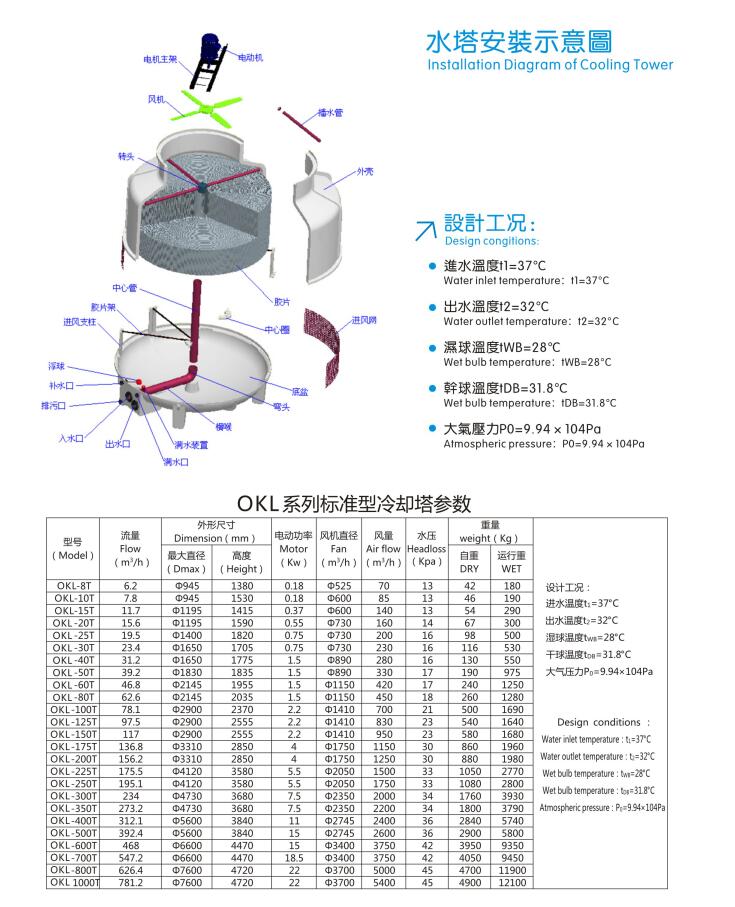 歐科隆圓形逆流式冷卻塔有三大系列、九種型號(hào)、九十個(gè)產(chǎn)品.